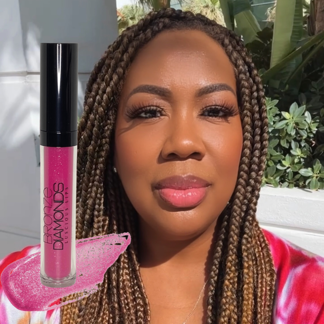 Judy, a delighted repeat customer, is wearing her favorite Bronze Diamonds lip shimmer, Bronze Sass. This is very much’ giving Glamorous and Sassy.